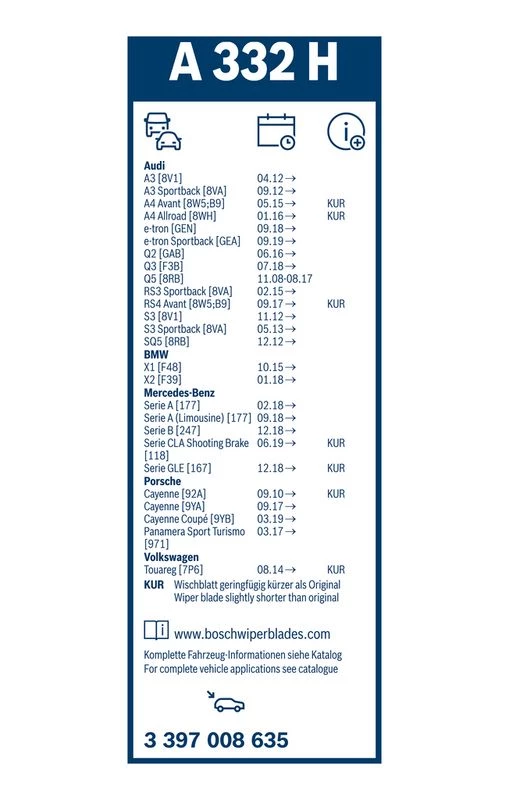 | Wischblattausführung | flachbalkenwischblatt |